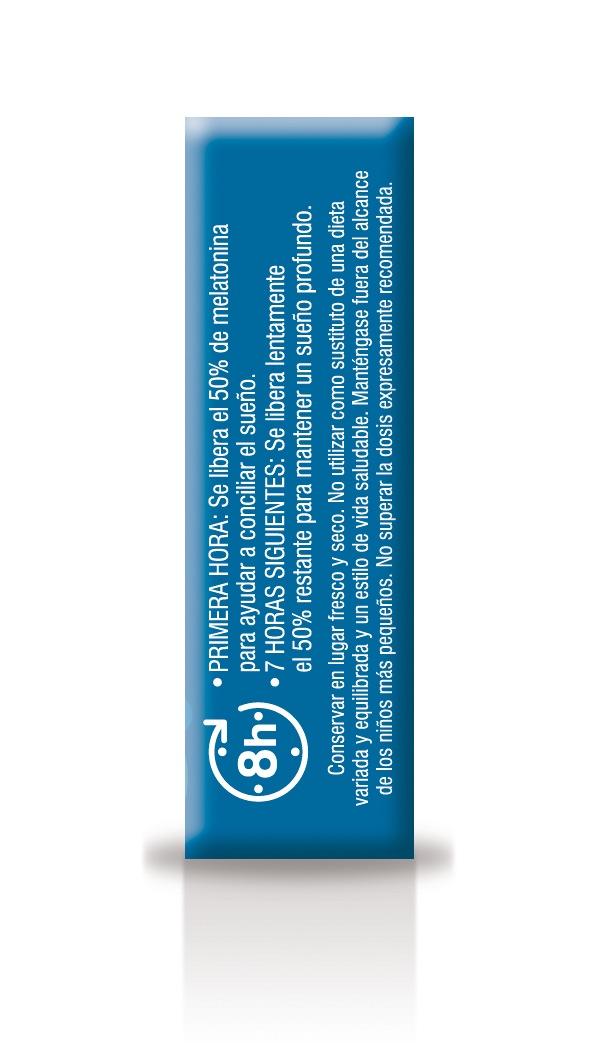 Complemento alimenticio con melatonina de doble liberación que ayuda a conciliar el sueño y acompaña el descanso nocturno con efecto gradual durante la noche.