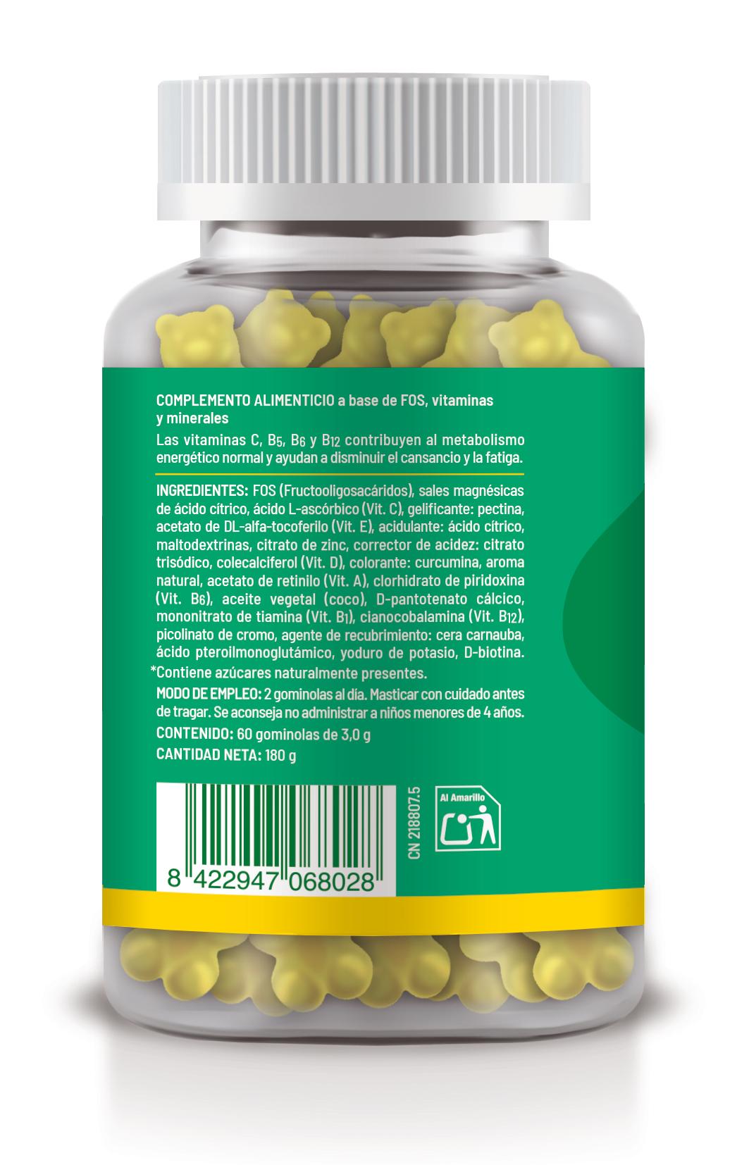 | Ingredientes o activos destacados | Vitaminas A, B1, B5, B6, B12, C, D y E, magnesio, zinc, cromo, ácido fólico, yodo, biotina y FOS |