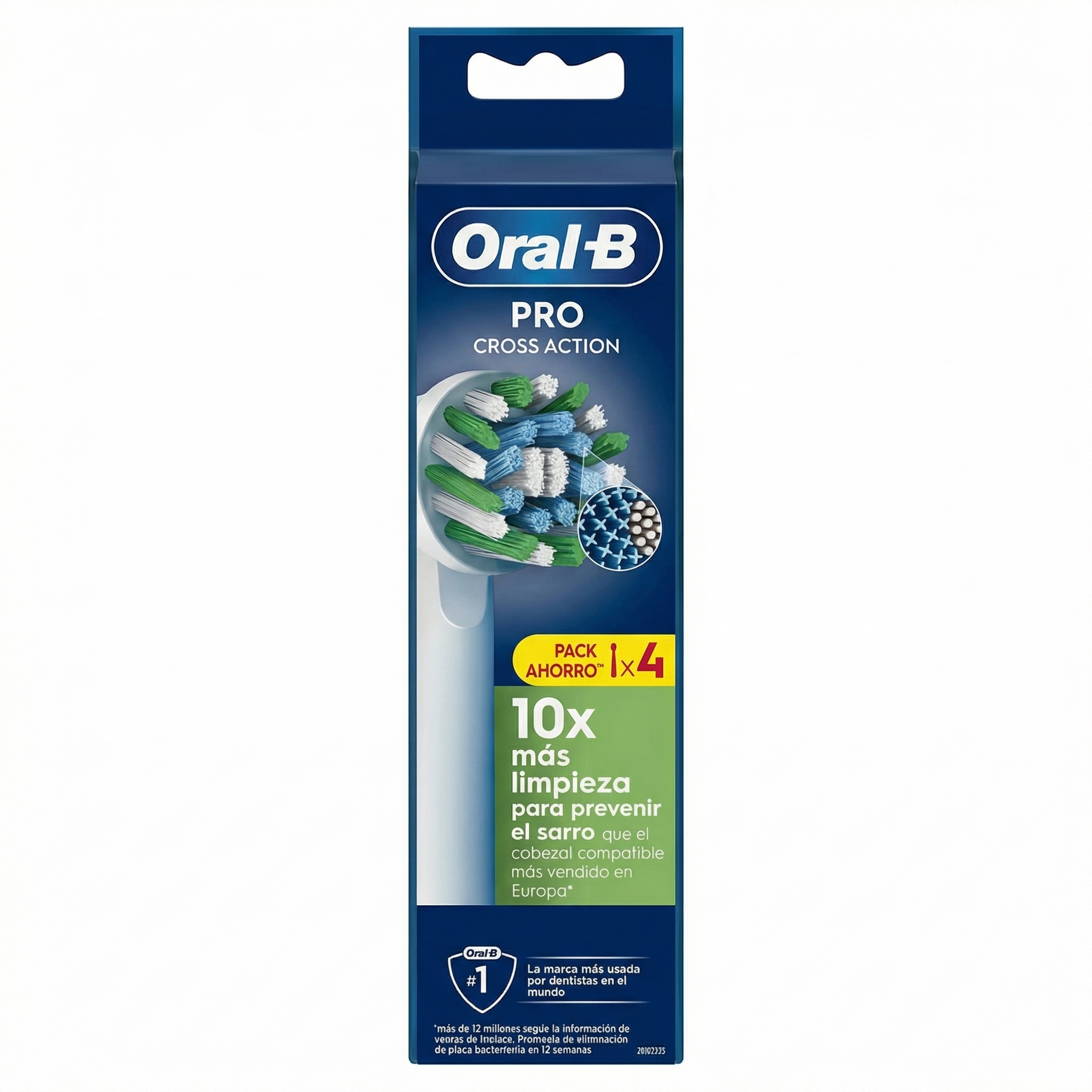 Oral-B Pro CrossAction Cabezales de Recambio 4 unidades es un pack pensado para quienes usan cepillo eléctrico Oral-B y quieren mantener una limpieza diaria eficaz, cómoda y consistente sin complicarse con modelos difíciles de elegir. CrossAction es uno de los cabezales más reconocibles de la marca y está orientado a una limpieza profunda en el día a día, con un diseño de filamentos angulados que busca adaptarse mejor a la superficie dental. Oral-B describe CrossAction como un cabezal con cerdas en un ángulo de 16° para una eliminación excelente de la placa, y en sus fichas de producto añade que cuenta con más de 2.200 filamentos inclinados para eliminar hasta un 100 % más de placa bacteriana en comparación con un cepillo de dientes manual normal.