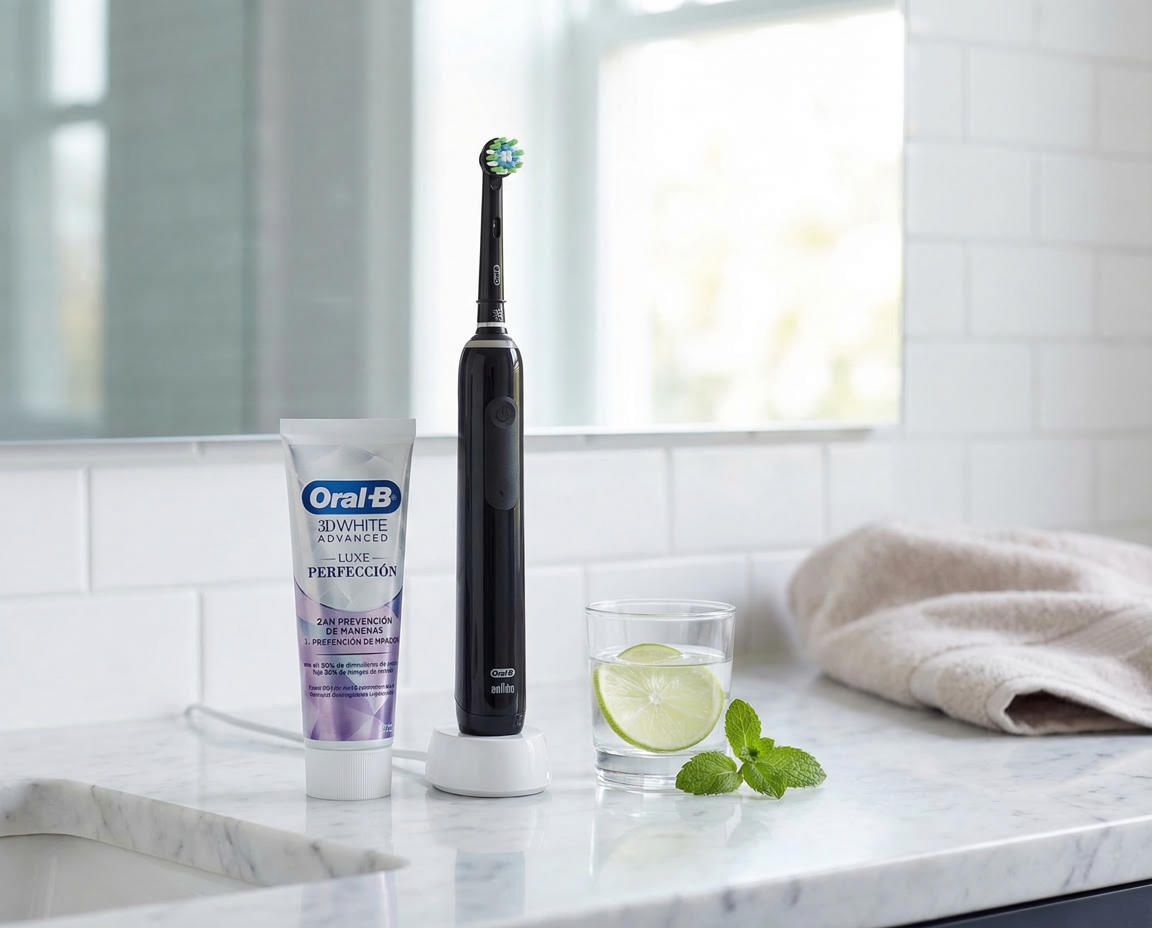 Según Oral-B, la gama PRO con tecnología 3D oscila, rota y vibra y puede eliminar hasta un 100 % más de placa que un cepillo manual estándar. La marca también relaciona esta limpieza con unas encías más sanas.