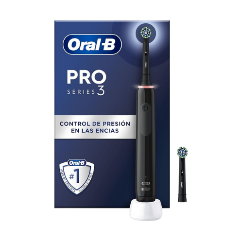 Aquí hay que ir con cuidado porque depende del pack. Oral-B España comercializa una versión negra de Pro 3 con 2 cabezales CrossAction, mientras que en la tienda oficial de Oral-B UK aparece una versión Pro 3 Black con 1 mango, 1 cargador y 1 cabezal. Revisa siempre el envase exacto del SKU que vas a vender para no montar una ficha Frankenstein.