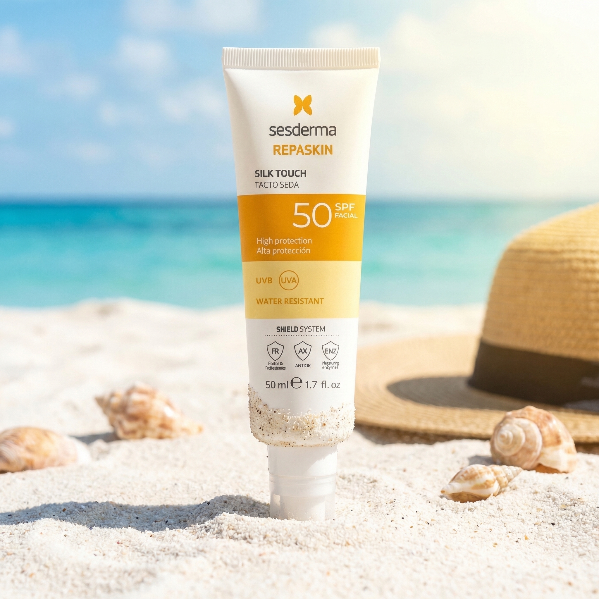 Sesderma REPASKIN Tacto Seda SPF50 50 ml es un fotoprotector facial de alta protección pensado para el uso diario. Su fórmula ayuda a proteger la piel frente a la radiación solar y destaca por su textura ligera, su acabado sedoso y su tacto aterciopelado, dejando una sensación confortable sobre la piel desde la primera aplicación.